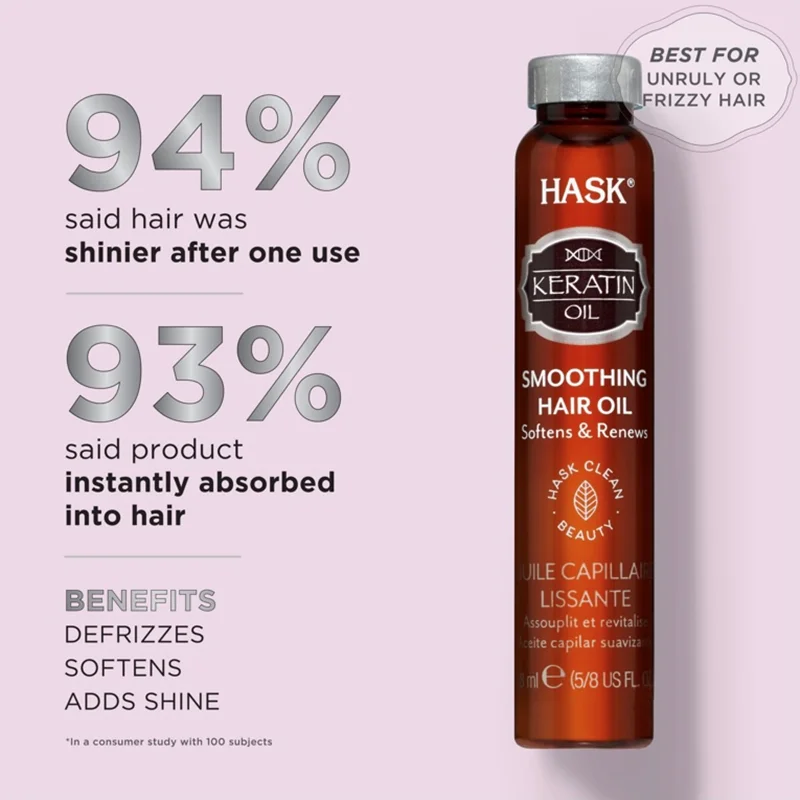 روغن نرم کننده مو پروتئین کراتین هاسک ساخت آمریکا، یک محصول عالی و مؤثر برای مراقبت از موهای شماست. این روغن غنی از کراتین هیدرولیز شده و ویتامین E است و موها را صاف و لخت و براق میکند. روغن مو کراتین پروتئین هاسک با تغذیه و رطوبت رسانی عمیق موها، خشکی و وز موها را برطرف کرده و موهایی نرم و درخشان به شما هدیه میدهد. این محصول فرمولاسیون سبکی دارد و سریعا جذب موها میشود و احساس چربی و سنگینی روی موها بر جای نمیگذارد. این روغن از محصولات مغذی و درمانی برای موهاست که به عمق موها نفوذ کرده و سبب احیا و بازسازی موها میشود. همچنین موهایی که در اثر رنگ ، دکلره و حرارت و ... آسیب دیده و خشک شده اند را ترمیم میکند و سلامت و شفافیت را به موها باز میگرداند. این روغن به راحتی گره موها را باز کرده و شانه کردن موها را راحت تر میکند. روغن مو هاسک با تقویت و مرطوب نگه داشتن موها، از خشک و شکننده شدن مو و ایجاد موخوره نیز جلوگیری میکند.