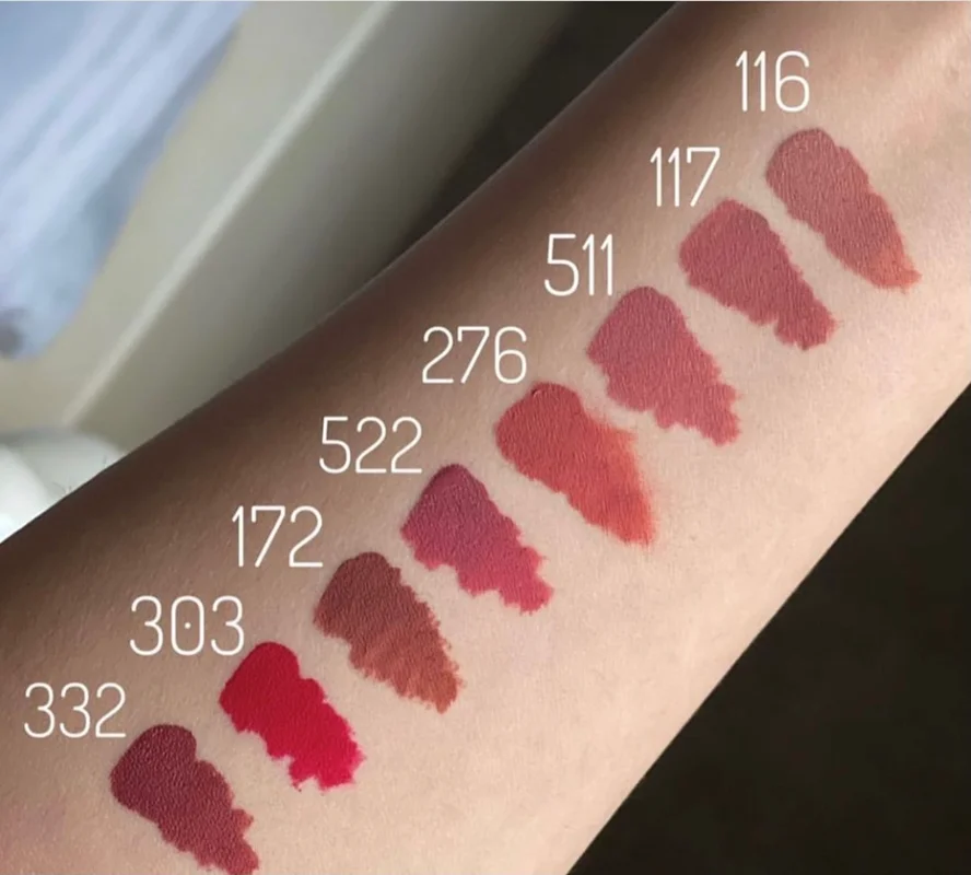 - رنگ بندی 106 Silence 116 Nude Peach 117 Rosy 172 Rust 276 Light Coral 303 Poison Apple 305 Juliet 332 Roasted 511 Cashmere 514 Primrose 522 Kitty Tongue 553 Delight